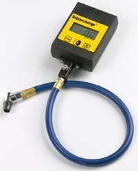 Intercomp racing digital tire air pressure gauge 0-100 PSI in 0.1 increments Digital Tire Pressure Gauge w/ 20" Goodyear hose, 45-degree swivel nozzle and carrying case Feature